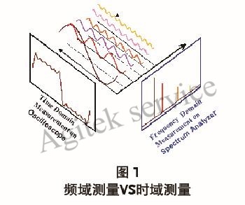 信号的频谱分布实际上就是测量结果在频域上的反映,频域和时域的关系如图1所示。示波器在时域测得近似方波的信号,经过傅里叶变换被分解为基波和高达11次奇次谐波。当用频谱分析仪从频域观察时,能够识别出所有频率组成。以图1为例,基波、3次谐波、5次谐波和11次谐波可以被区分出来。由此可以看出,时域和频域是从不同角度对同一个信号的描述。