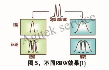 当输入信号频率转换为更低频带并滤入检测和显示单元时,为了区别频率接近的信号,会用到RBW(分辨率带宽)滤波器,如图4所示。
