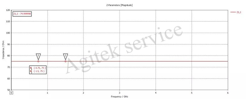 答:传输线 Z11t = R × SQRT(Z11p/R) = 75Ω
