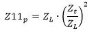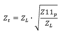 ②峰值 Z11p = R × (Zt/R)^2 = 112.5Ω
