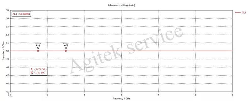 射频阻抗Z=R+jX,其幅度和相位随频率变化而周期性变化。以下实例,分析一段传输线+电阻的Z11阻抗特性。