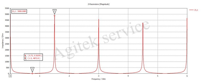 ①阻抗相位过零点频率:fc = C0/(2×Le) = 1.5GHz