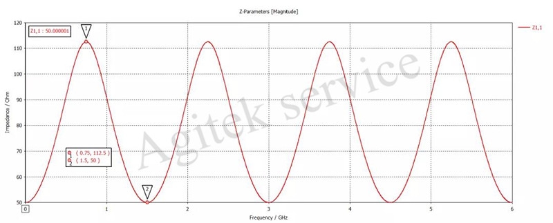 根据电长度不同,Z11参数频响周期性变化,此周期对应端口输入电长度2倍。