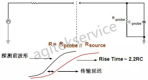 容性负载相当于在被测电路上并联了一个电容,对被测信号有滤波的作用,影响被测信号的上升下降时间,影响传输延迟,影响传输互连通道的带宽。有时,加上探头时,有故障的电路变得正常了,这个电容效应起到了关键的作用。一般推荐使用电容负载尽量小的探头,以减小对被测信号边沿的影响。