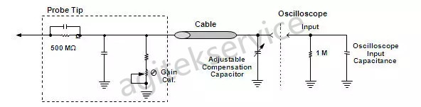 2.带补偿的高阻无源探头(最常用的无源探头);