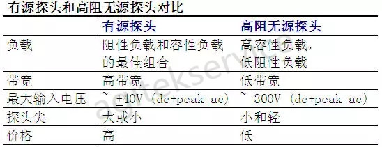 低阻电阻分压探头具备较低的电容负载(<1pf),较高的带宽(>1.5GHz),较低的价格,但是电阻负载非常大,一般只有500ohm或1Kohm,所以只适合测试低源阻抗的电路,或只关注时间参数测试的电路。
