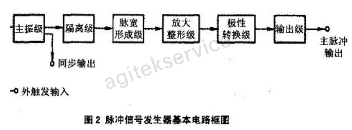 主振级一般由无稳态电路组成,产生重复频率可调的周期性信号。隔离级由电流开关组成,它把主振冲信号输出幅度的要求,使脉冲信号发生器具有一定带负载能力。通过衰减器使输出的脉冲信号幅度可调。