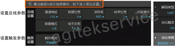 1、选择正确的协议类型,并将“触发使能”选择“ON”,信号将按照协议的开始位、数据位或地址位等进行触发。