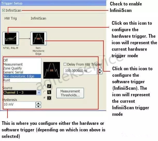 3、边沿非单调性触发:对于非单调的上升或下降边沿进行触发。