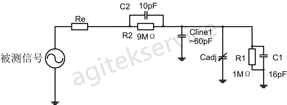 对于10×无源探头,其等效模型如下图所示。