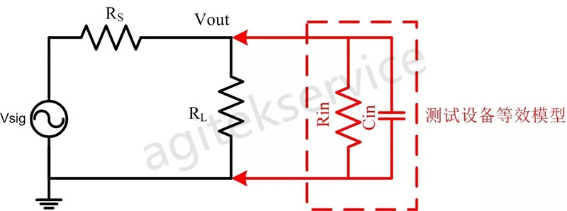 前文提到过,探头都是具有输入电容和输入电阻的,这就导致其并不能当成一个阻抗无穷大的设备,其测量时的等效模型如下图所示。