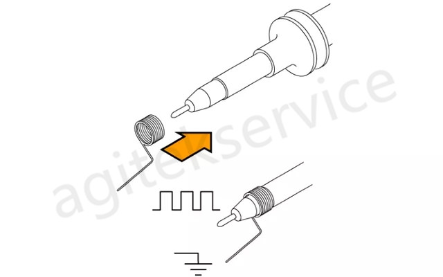 可以看出,在60MHz以上的频率,幅度已经产生了超过3dB的过冲,而到达100M左右时,过冲到最大幅度。所以如果采用地夹,测量超过60MHz的信号就会产生比较大的失真。正确的方式应该是采用接地弹簧。接地弹簧具有非常小的电感,可以大大提升探头的带宽。