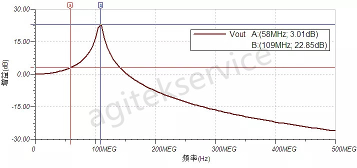 下图为用该等效电路仿真出的频谱特性曲线: