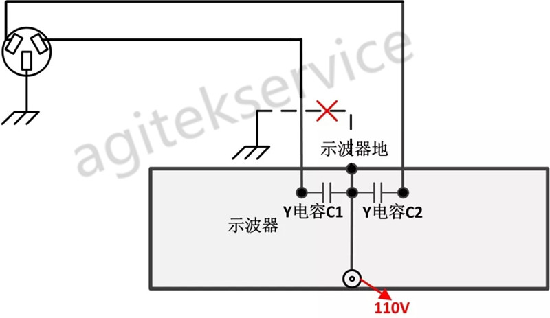 由于Y电容的原因,导致原本的接地点电压就不在是0V,而是LN之间电压的一半也就是110V电压,这个电压会对人体进行伤害。所以示波器的测量过程中,一定要保证接地良好,或者采用隔离变压器进行完全的安全隔离,否则有可能会导致使用者触电。