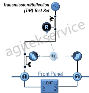 根据网络分析仪性能和成本的不同,有多种方式实现结构中的四个模块。测试装置可以设计成传输/反射(T/R)或全S-参数。其中,T/R测试装置是最基本的实现方式,结构见图。