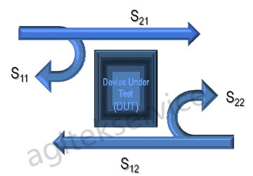 S-参数是一种复杂的向量,它们代表了两个射频信号的比值。S-参数包含幅值和相位,在笛卡尔形式下表现为实和虚。S-参数用S坐标系表示,X代表DUT被测量的输出端,Y代表入射RF信号激励的DUT输入端。下图示意了一个简单的双端口器件,它可以表征为射频滤波器,衰减器或放大器。