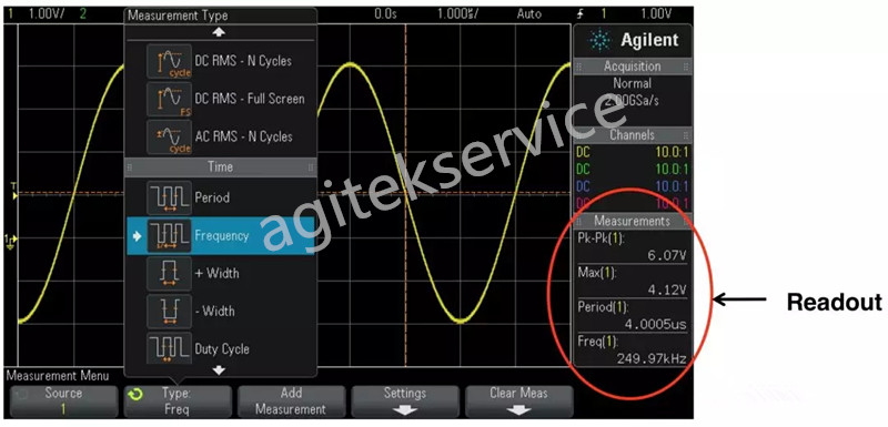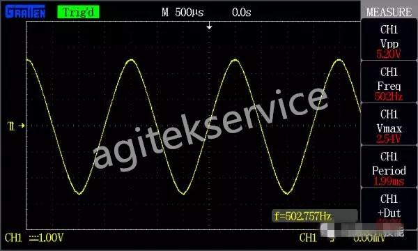 使用示波器的测量工具获取Vpp,Vmax,频率,周期,占空比等信息.