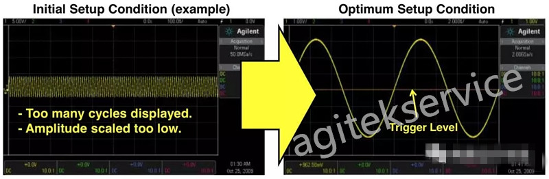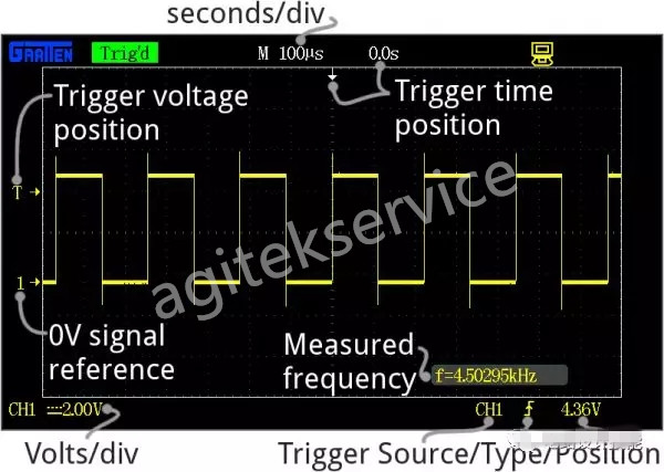 触发系统主要是为了稳定波形的显示并让示波器能聚焦,通过调节“触发”按钮,你可以告诉示波器在哪一个起始点开始测量。如果被测的信号是周期性的波形,通过触发的设置,可以让波形在屏幕上稳定显示,像静止不动一样。如果触发没有调节好,波形就会在屏幕上跑来跑去,不能稳定下来。