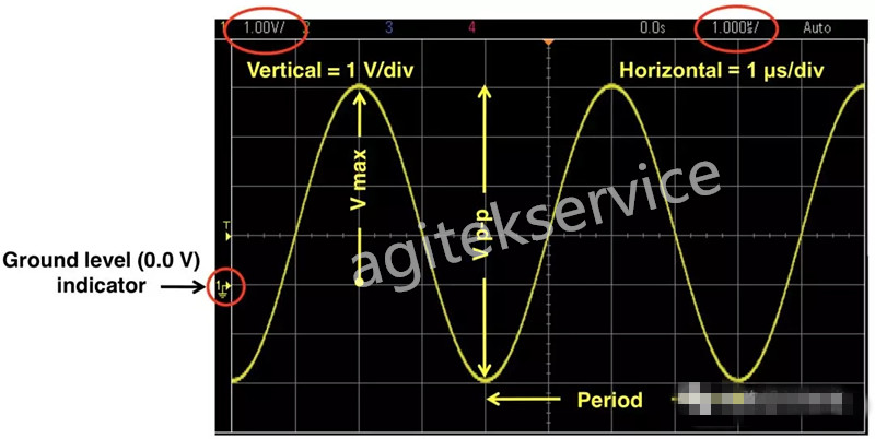 示波器显示屏的竖向显示的是测量信号的电压,它的显示控制一般会通过两个旋钮:一个调节波形在竖直方向的位置,另一个调节每格的刻度(伏/格)。.