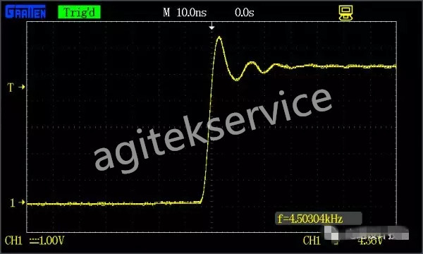 上升时间–示波器的上升时间决定了其能够测量的最快的上升脉冲,这个指标与带宽高度相关,可以用这个公式来换算:RiseTime=0.35/Bandwidth.
