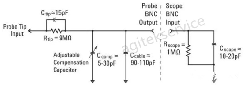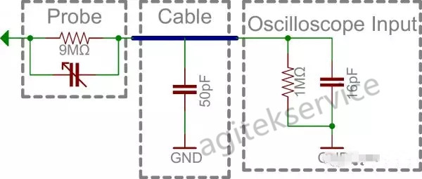示波器探头内部等效阻抗以及和示波器输入端的连接