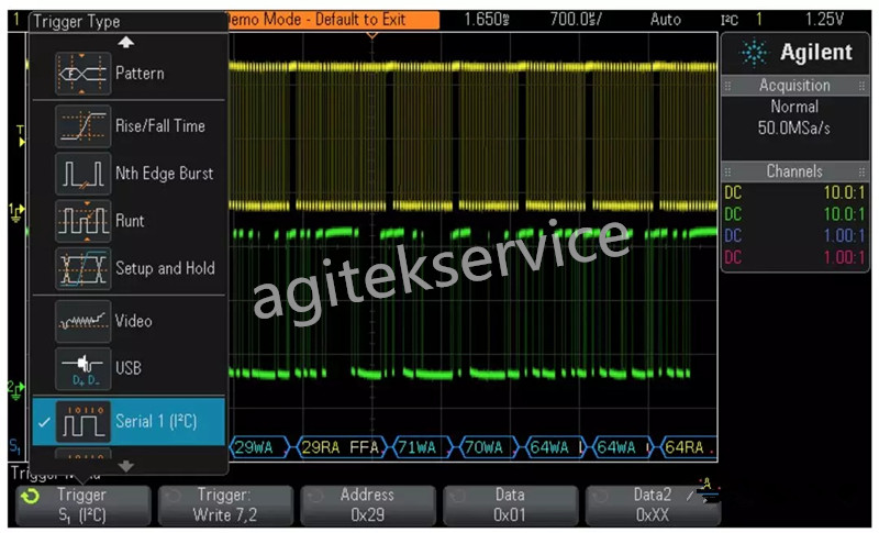 取样率–这是数字示波器特有的指标,反映了对模拟信号以每秒多少次的速度进行采样。有的多通道示波器,当多个通道同时使用的时候采样率可能会降低,一般以MSa/S来表示,示波器的最高采样率应该大于4倍的模拟带宽。