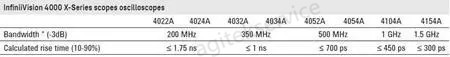 现在,用“0.35”除以计算的上升时间值。以200MHz示波器(4022A)为例,得出的结果是:0.35/1.75ns=200MHz