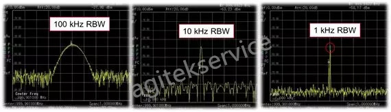 较宽的RBW较能充分地反应输入信号频谱的波形与振幅,但较低的RBW将能区别不同频率的信号。也就是说RBW代表两个不同频率的信号能够被清楚的分辨出来的最低带宽差异,两个不同频率的信号带宽如低于频谱分析仪的RBW,此时该两信号将重迭,难以分辨,较低的RBW固然有助于不同频率信号的分辨与量测,低的RBW将滤除较高频率的信号成份,导致信号显示时产生失真,失真值与设定的RBW密切相关,较高的RBW固然有助于宽带带信号的侦测,将增加噪声底层值(NoiseFloor),降低量测灵敏度,对于侦测低强度的信号易产生阻碍。