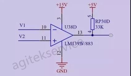 如上图,电压比较器的原理是这样的,当V1>V2时,输出为低电平(GND)。