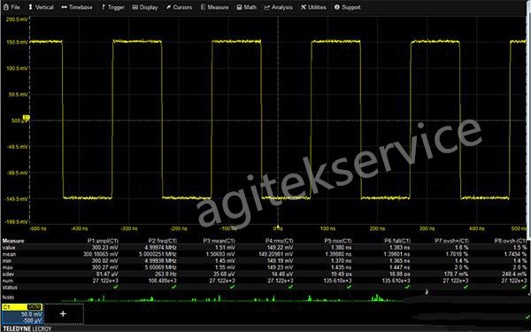 示波器上的自动测量参数提供最精确的测量,而光标则提供更高的测量灵活性。例如,使用光标可以非常简单地测量脉冲群的持续时间,但需要定制参数。同样,使用格线的栅格估算是进行基本测量的最快捷方法,非常适合用于快速验证测试设置。庆幸的是,现代数字示波器制造商成功保持了所有这三个方面的优势,可以帮助设计人员缩短所需的测试时间。本文由西安橙子视频下载示波器维修中心(www.hustinova.com)整理发布,欢迎留言探讨。