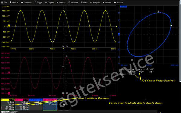 图2:轨迹和显示光标读数字段(包括振幅和时间位置)的X-Y光标