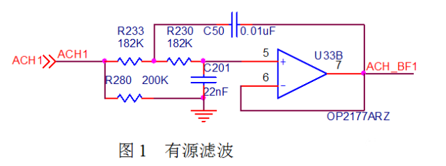 上图是典型的有源滤波电路(赛伦-凯电路,是巴特沃兹电路的一种)。有源滤波的好处是可以让大于截止频率的信号更快速的衰减,而且滤波特性对电容、电阻的要求不高。该电路的设计要点是:在满足合适的截止频率的条件下,尽可能将R233和R230的阻值选一致,C50和C201的容量大小选取一致(两级RC电路的电阻、电容值相等时,叫赛伦凯电路),这样就可以在满足滤波性能的情况下,将器件的种类归一化。(电源方案解决专家:华星电源)