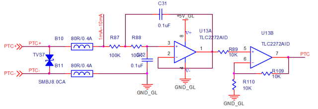 其中电阻R280是防止输入悬空,会导致运放输出异常。