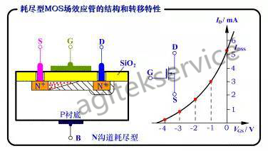 图1.N沟道耗尽型MOSFET的结构和转移特性曲线