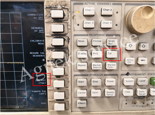 基本参数设置完就需要确认一下校准参数了,通过点击按键【Cal】选择【CALKIT7mm】选项可以去选择对应的校准件。