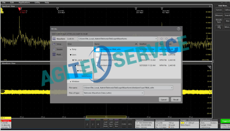 其操作菜单接近于频谱仪设置,可独立于时域设置CF以及Span等参数,相较于FFT操作更加便利。MSO4/5最高Span可至500MHz,MSO6BSeries最高Span高达2GHz,示波器可以作为一台DC起的中档频谱仪使用。