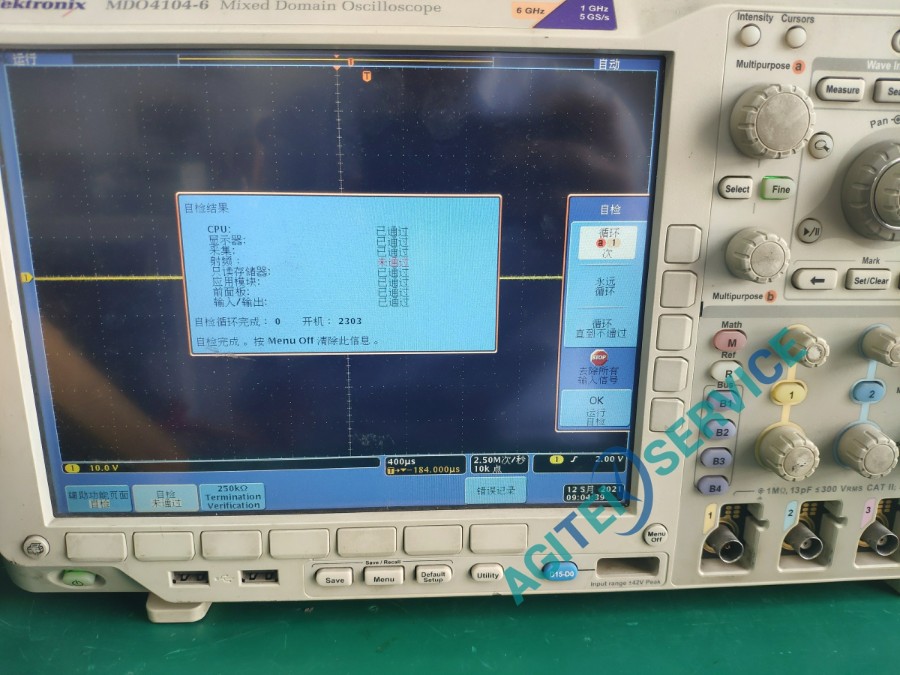 概述: 泰克MDO 4000系列混合域示波器可维修故障:1.无法开机;2.开机黑屏、白屏、蓝屏、花屏等显示故障;3.通道故障;4.旋钮和按键故障;5.无法与电脑或其他设备连接;6.自检异常,显示CH1或CH2采集板或主板故障等: