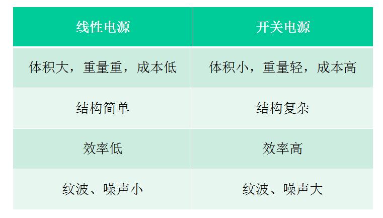(三)线性电源和开关电源的比较: