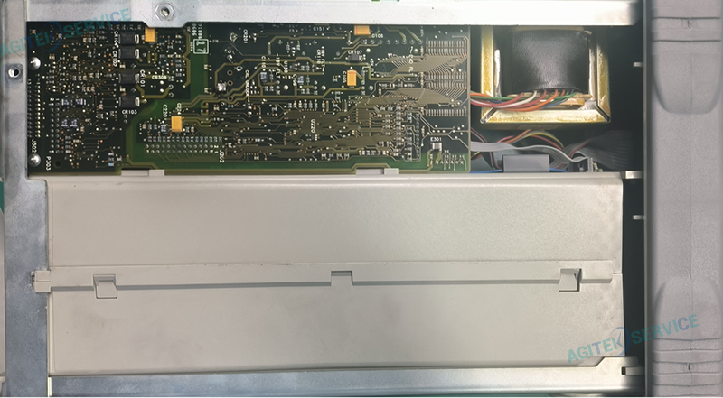 三、故障检测:根据客户报修故障,正常接入220AC电源之后按下开机键,仪器上电自检报错,测试指标超差,而且数值波动大。34970A上电自检出现报错后,可以根据具体的报错代码在手册里查找相关的信息,处理完报错信息之后,一般情况下,再对仪器进行校准即可使仪器恢复正常。但是这台仪器在校准的时候出现多个报错,并且在上电运行完整自检时也出现报错。经过工程师拆机检测,对内部元件进行详细检测。发现仪器DMM小板损坏。