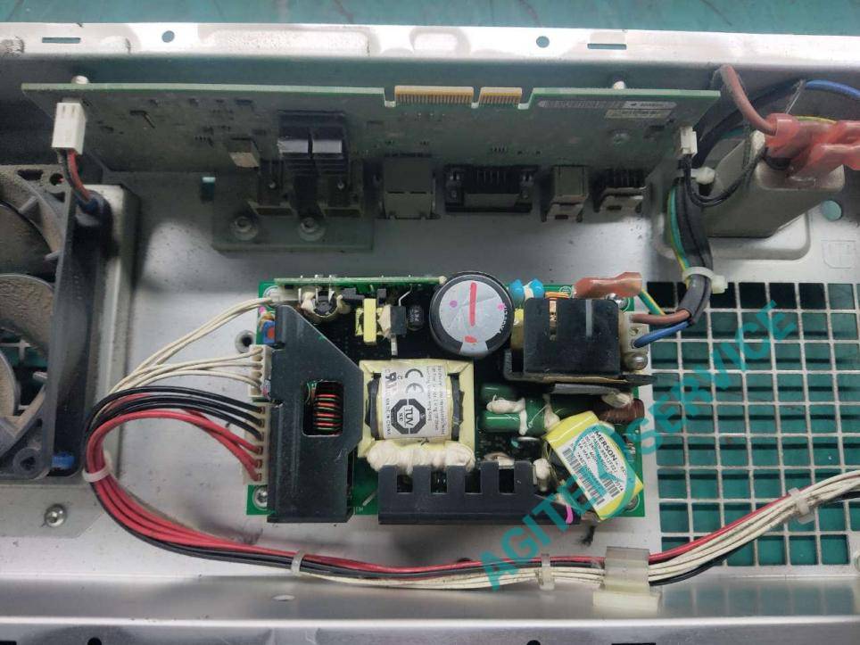 主电源模块由于长期使用,导致器件性能下降,导致开机温度升高后自动断电关机,更换损坏器件,清理电源积灰。装机上电测试,开机正常,自检自校准通过,指标正常。
