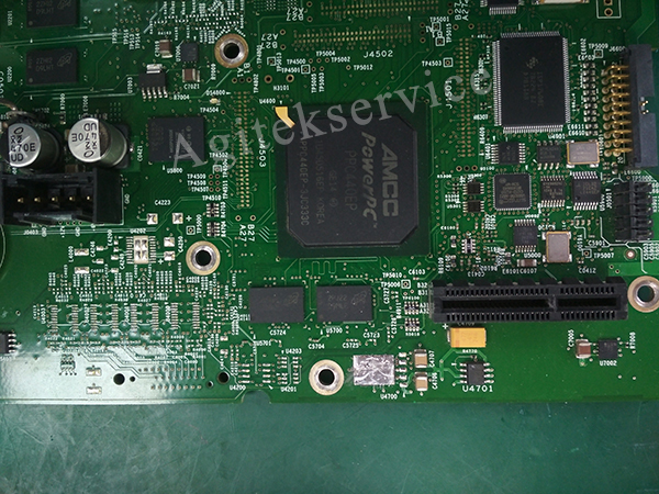 三、测试与判断:经检测,仪器上电白屏,无法开机,采集板大面积拆焊,缺件,主板损坏,开机后通道3垂直灵敏度编码器失灵。