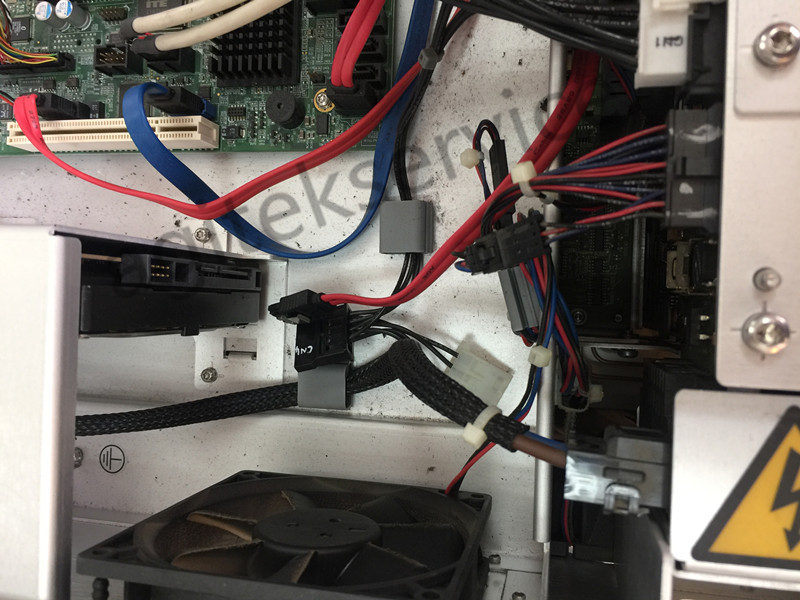 拆开仪器后盖发现仪器硬盘电源数据线没插。