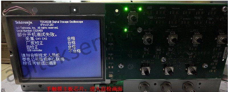 泰克TDS2022B之前开机自检,USBcontroller自检不合格,还能正常使用。突然一天开机白屏,按键灯都不亮,不能进入自检画面。