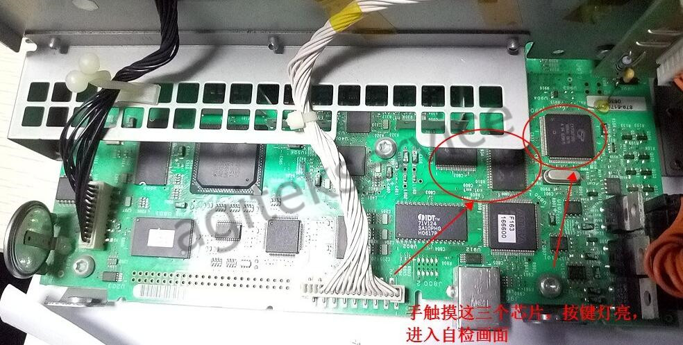 拆机测量电源时,手触碰主板,可开机。有时开机极少数可以进入自检界面,能正常使用。但是开机时,手触摸主板几个集成芯片,可以进入自检画面。