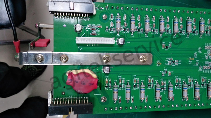 拆机检查,内部功率消耗模块(5个)其中一个上面损坏压敏电阻一个和功率管若干。