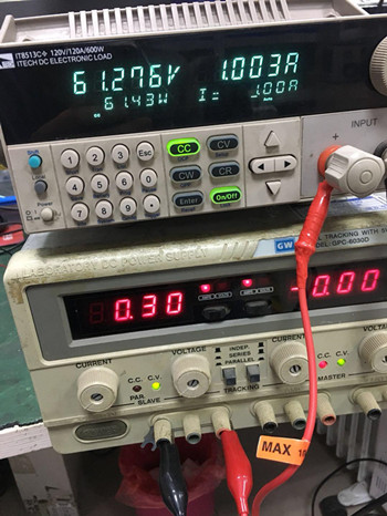二、故障:主、从路电压显示值、实测值不稳;主路模式混乱,主路电流调节最大处时处于CC模式(客户描述)。实测中还发现从路电流显示值不稳,存在接触不良的问题。
