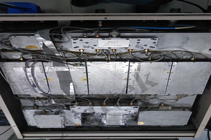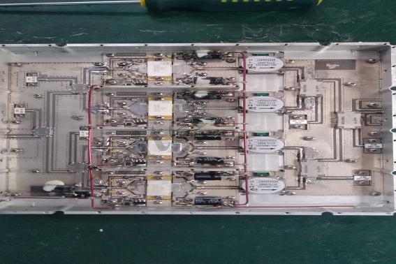 检测内部各个模块,发现为最后一级大功率放大模块全部损坏。